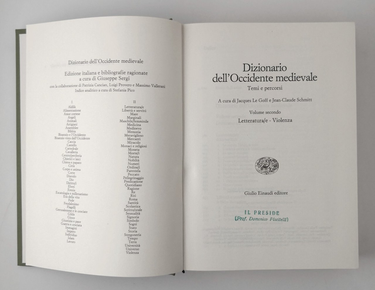 DIZIONARIO DELL'OCCIDENTE MEDIEVALE di Jacques Le Goff e Jean Claude Schmitt. Temi e percorsi. Volume II. Letteratura/e - Violenza.