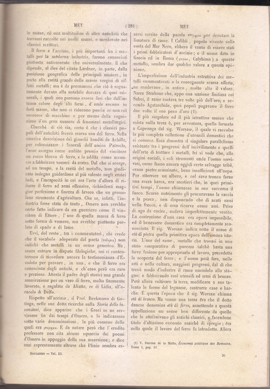DIZIONARIO DI ECONOMIA POLITICA E DEL COMMERCIO volume 3 di Boccardo 1859 Antico