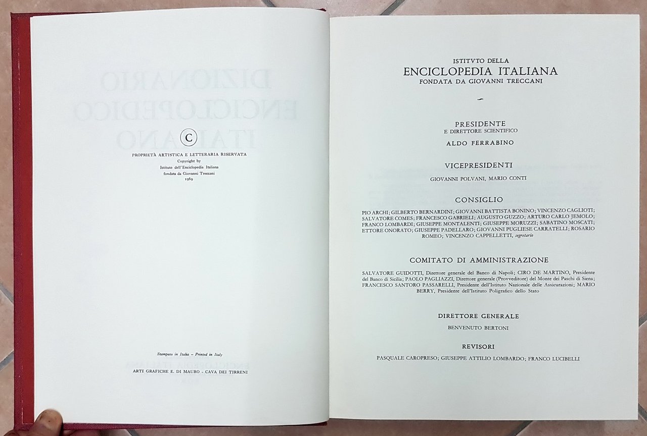 - PRIMA EDIZIONE del più noto Dizionario Enciclopedico Italiano,