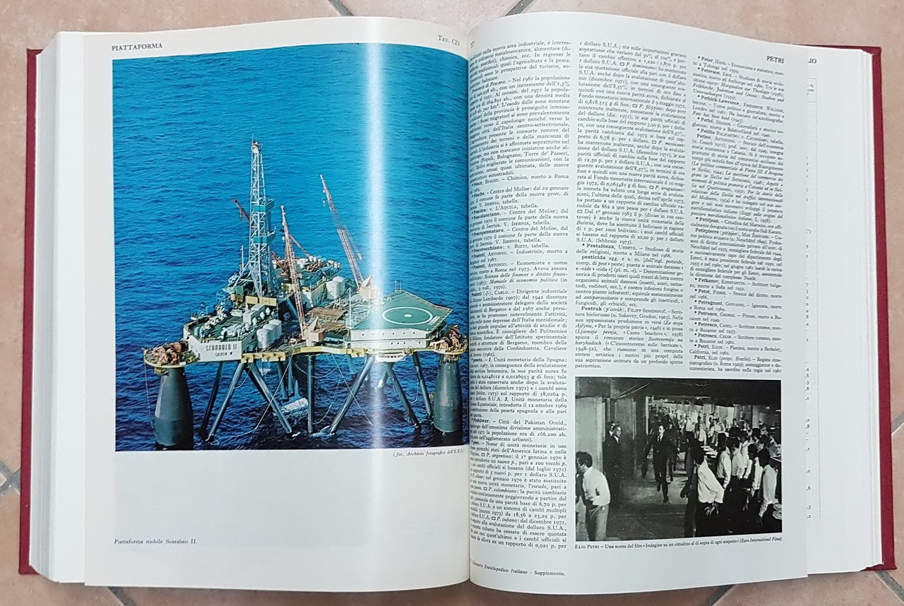 N. 12 + 2 volumi in -4 (24,5 x 31 cm.), legatura t.tela rossa con scritte in oro sul piatto e al dorso, pp. 14, 864, 880, 864, 864, 864, 880, 870, 854, 952, 958, 960, 1026, 224 con innumerevoli ill. in b.n. e a colori nel testo e f.testo, carte geografiche colorate a piena e a più pagine ripiegate. In ottimo stato di conservazione (senza alcuna mancanza). I due volumi in aggiunta sono una appendice del 1963 con l'indice delle tavole e 1 vol. di supplemento del 1969 (aggiornamento).
