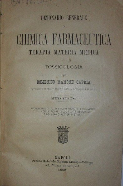 DIZIONARIO GENERALE DI CHIMICA FARMACEUTICA. Terapia materia medica e tossicologia.