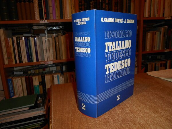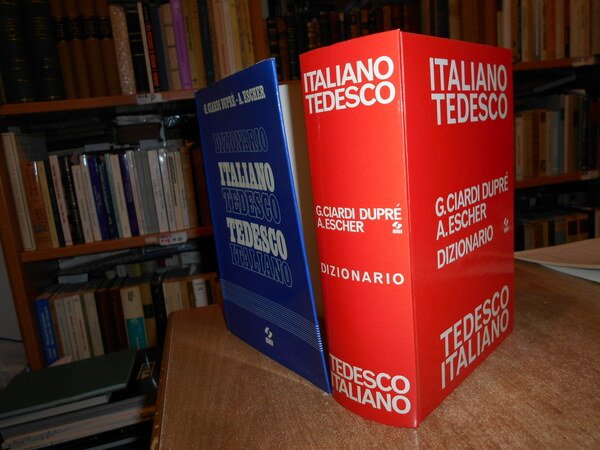 Ciardi Dupré - A. Escher. Torino, Officine Grafiche SEI, 1977. Dizionario Italiano Tedesco. Tedesco Italiano. In-8°, cartonato edit. rosso con sovracopertina. (vi), 1762 pp. In ottimo stato di conservazione. Uff. stanz. TV. mob. fronte nostro.