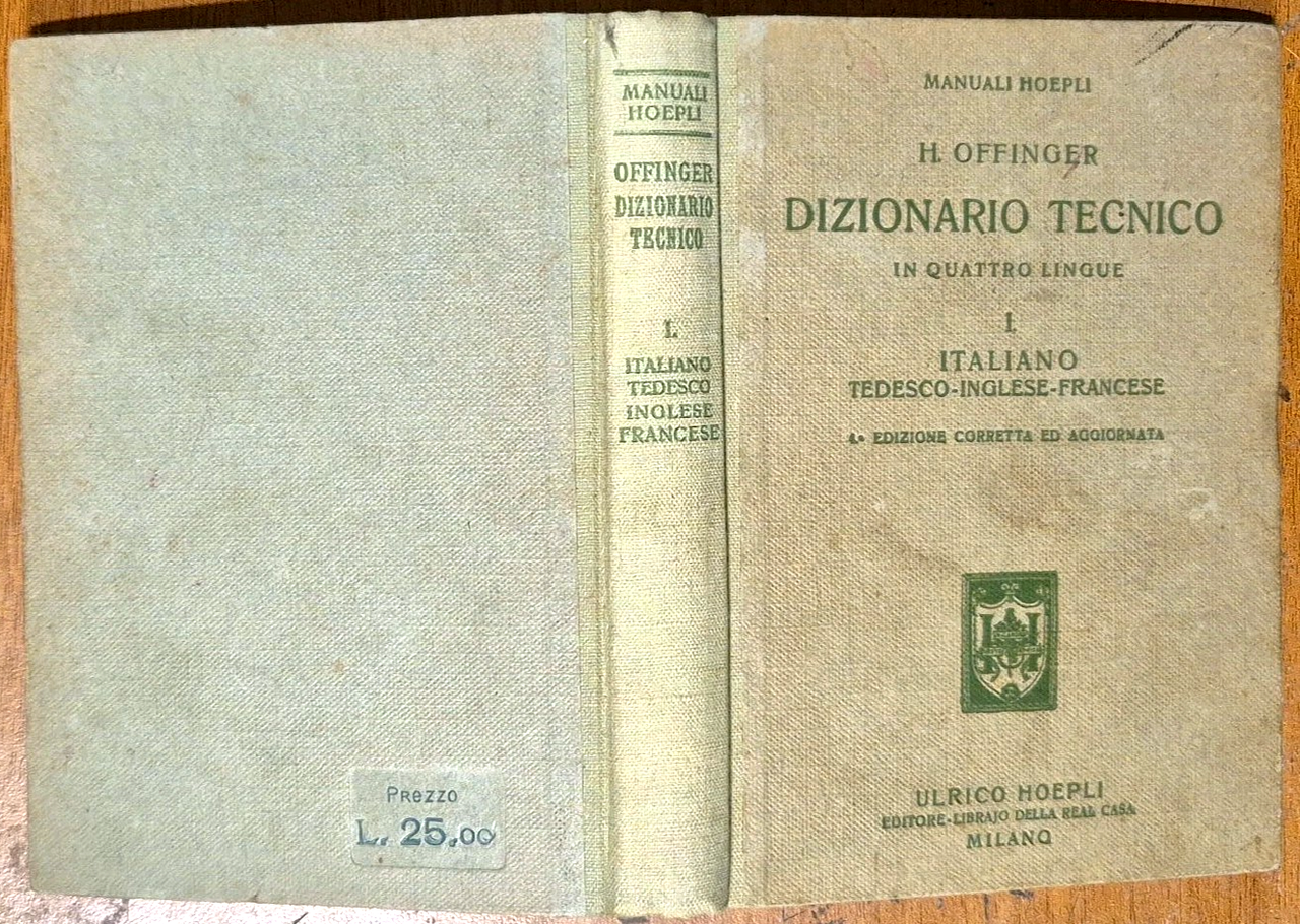 DIZIONARIO TECNICO IN QUATTRO LINGUE volume 1 ITALIANO di Offinger 1922 Hoepli