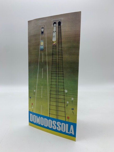 Pieghevole turistico promozionale della citta' di Domodossola (aperto misura cm 48 x 33 circa) con cartina della provincia al recto, piantina della citta' al verso e alcune riproduzioni fotografiche della Val Formazza e della valle Anzasca. Non datato ma ascrivibile agli anni Sessanta.
