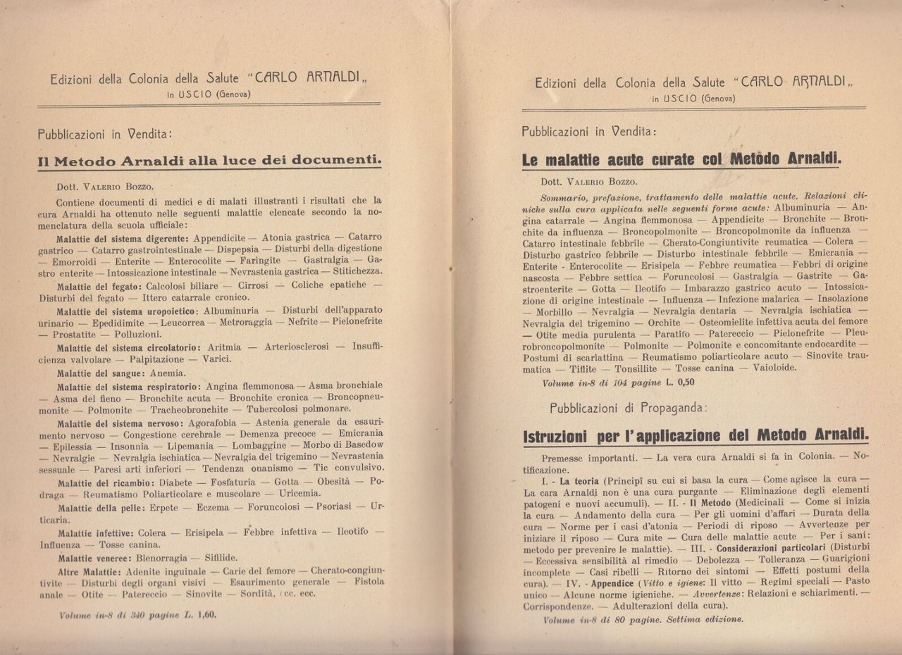 Edizioni della colonia della salute Carlo Arnaldi in Uscio, 1914 .