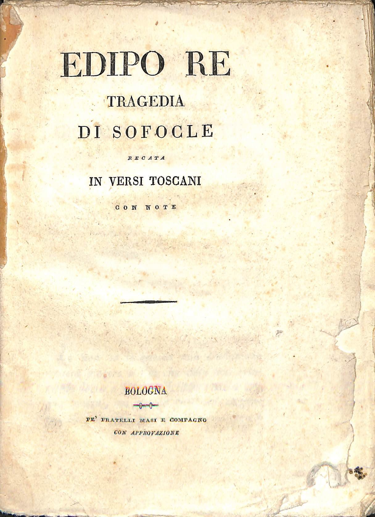 Edipo re tragedia di Sofocle recata in versi toscani con note