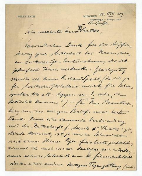 Rath, Willy, Schriftsteller Und Regisseur (1872-1940).