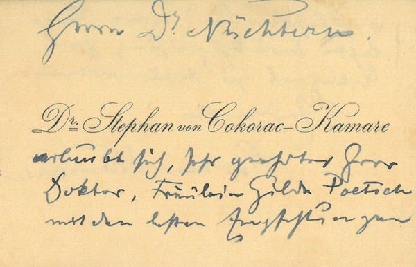 Cokorac Von Kamare, Stephan, Schriftsteller (1885-1945).