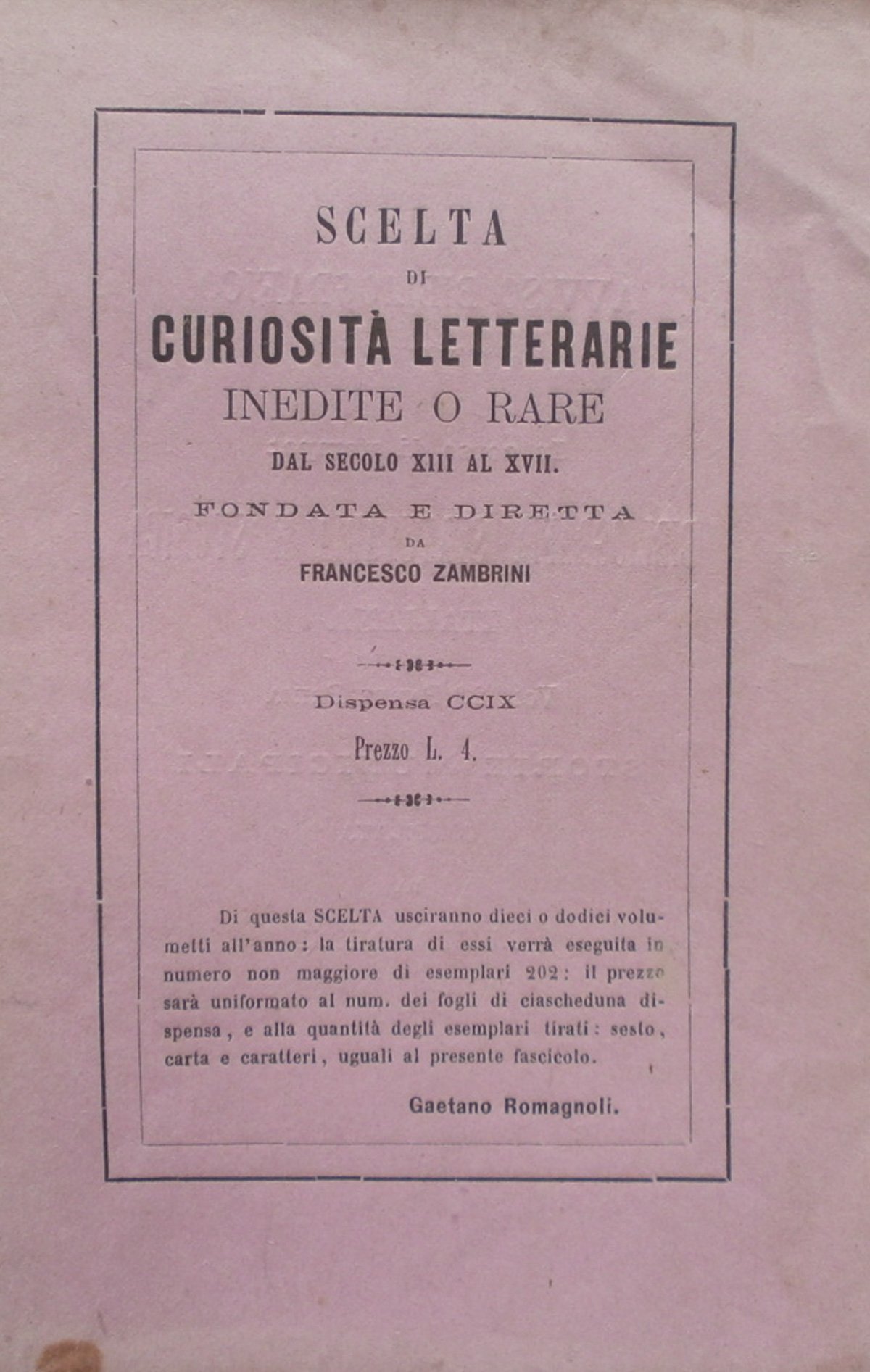Dispensa 209. Prefazione di Ernesto Lamma, a seguire il testo in forma dialogata. Edizione di 202 esemplari. Copia n. . 853 - V In Ottavi (15-23cm ) Buono (Good) Buono