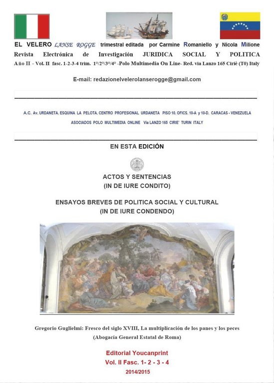 "El velero lanse rogge" - Rivista trimestrale di Ricerca Giuridica Sociale e Politica - propone in questo II volume: Atti, Sentenze, Studi e Saggi di Diritto; Commenti, Monografie, Note di Giurisprudenza Costituzionale di vari autori, in lingua italiana, spagnola, cinese.