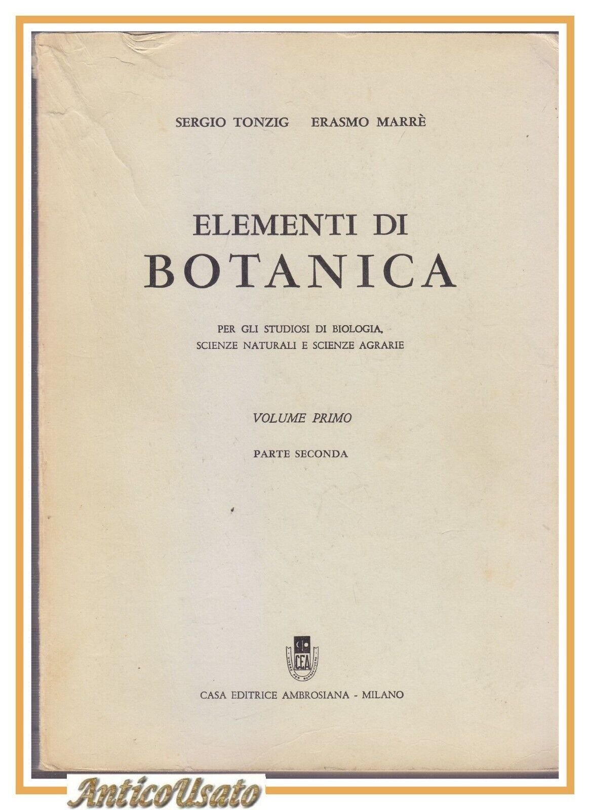 ELEMENTI DI BOTANICA volume I parte II Tonzig e Marrè 1968 libro manuale scienze