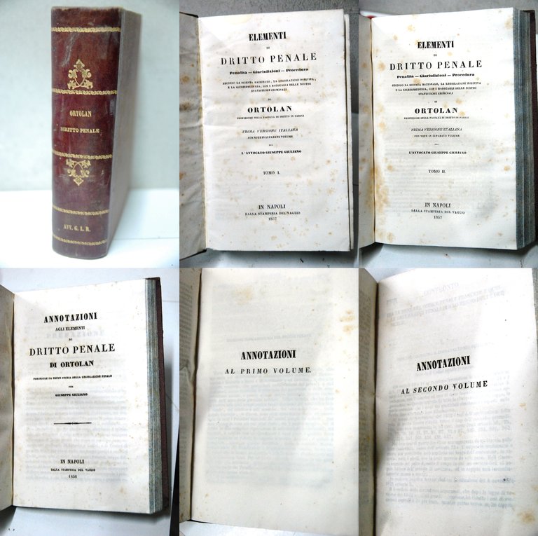 elementi di diritto penale penalità giurisdizioni procedura opera cpl. 3 voll. in unico tomo, con allegati