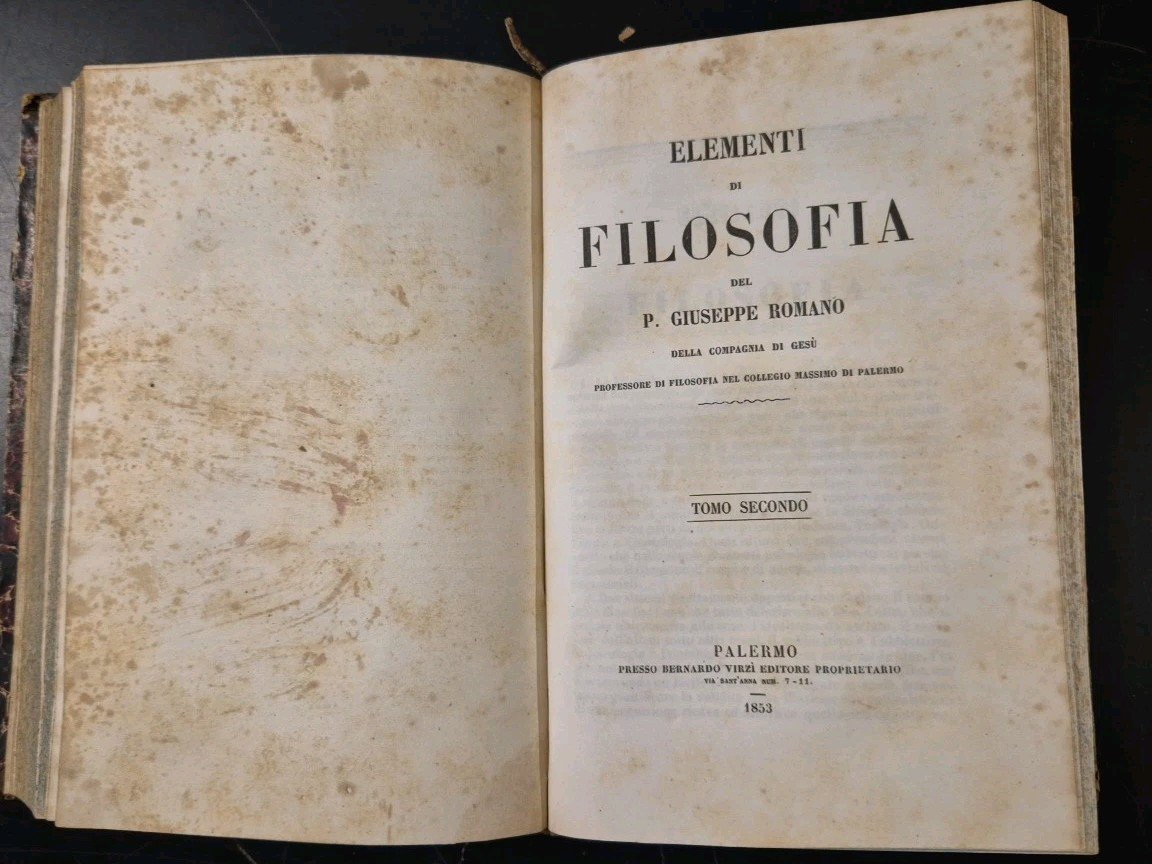 ELEMENTI DI FILOSOFIA opera completa di Giuseppe Romano 1853 Virzì libro antico