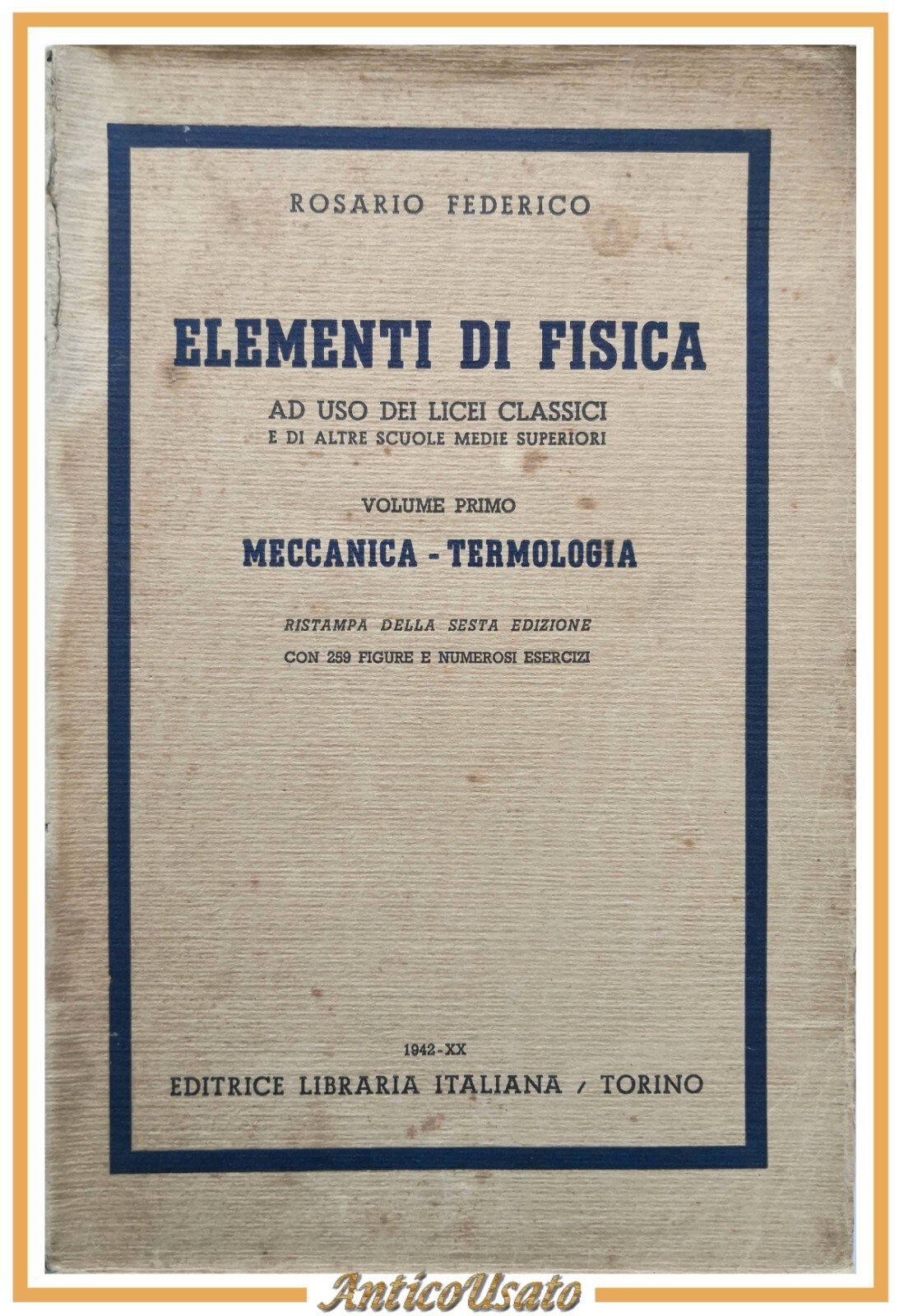 ELEMENTI DI FISICA Rosario Federico volume I Meccanica Termologia 1943 Libro