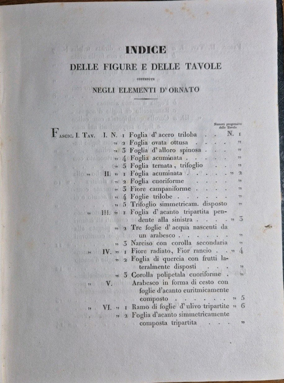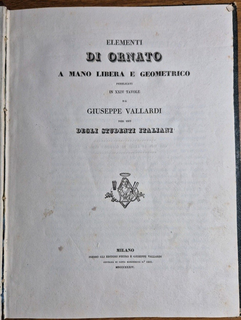 ELEMENTI DI ORNATO A MANO LIBERA E GEOMETRICO di Giuseppe Vallardi 1834 Libro