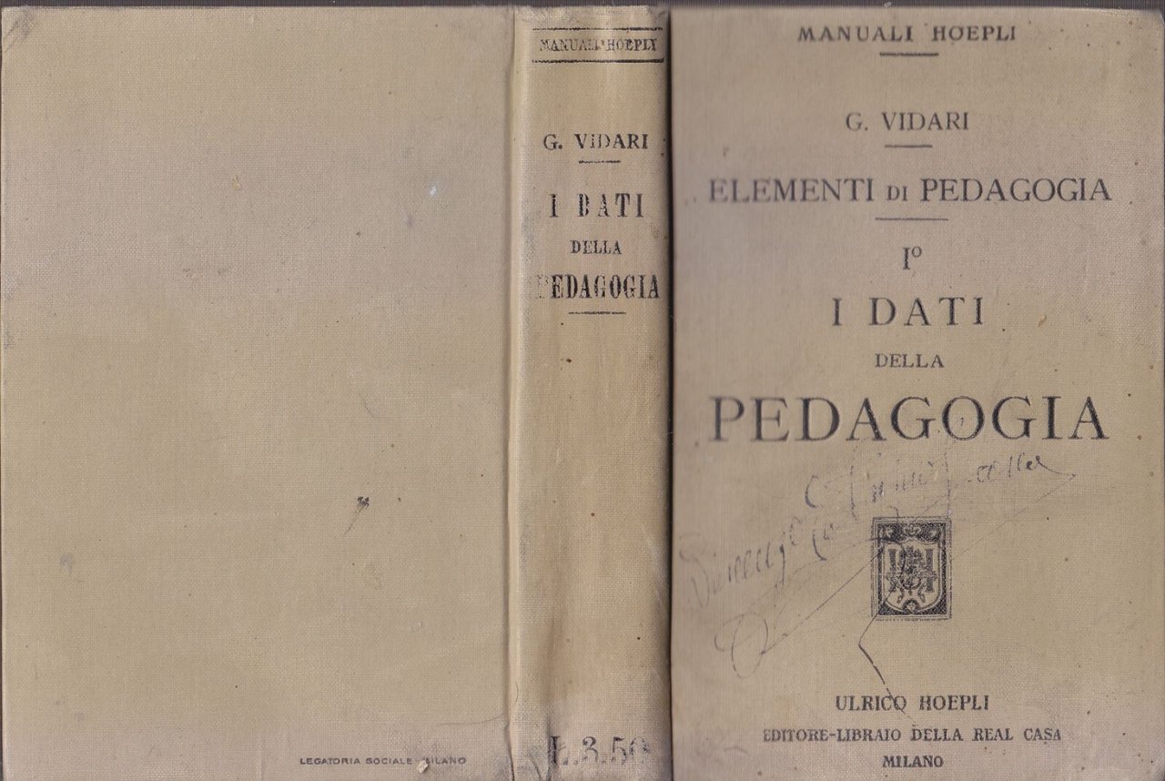 ELEMENTI DI PEDAGOGIA volume I I DATI G Vidari 1916 Hoepli Libro Manuale della