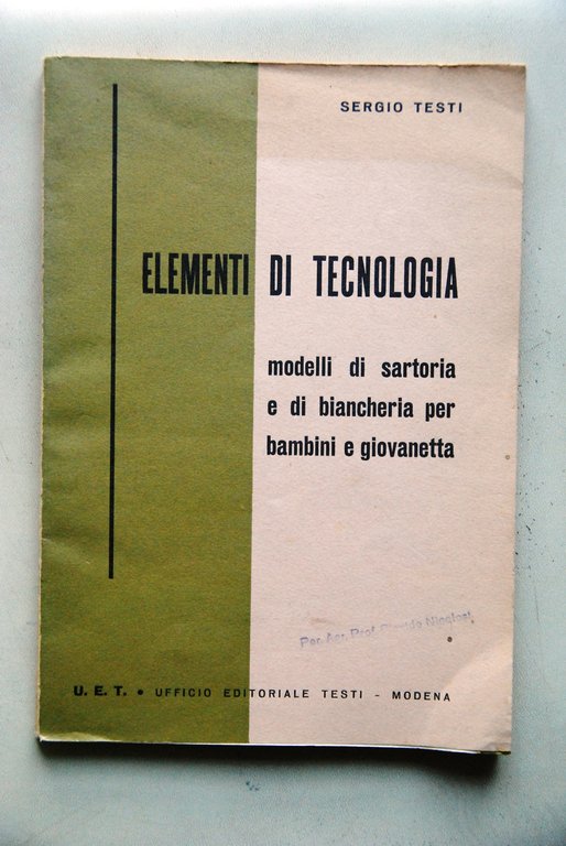elementi di tecnologia modelli di sartoria e di biancheria NUOVO