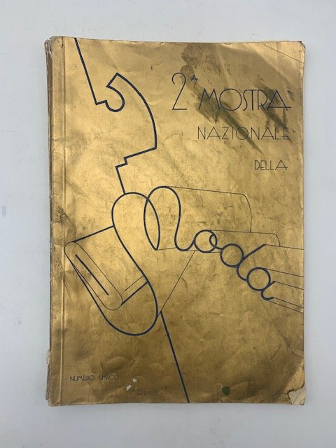 In 4 (cm 23,5 x 34), pp. XVI + (2) di pubblicita' + 96 + XVII-XXIV di pubblicita'. Brossura editoriale dorata con danni riparati al dorso e tracce di polverosita' ai piatti. Numero unico di questa rivista uscita in occasione della II Mostra nazionale della moda tenutasi a Torino nell'ottobre 1933 (la I Mostra si era tenuta nell'aprile dello stesso anno). All'interno articoli e riproduzioni fotografiche di abiti di vari atelier italiani fra i quali Ferrario (Milano), Binello (Torino), Romano (Torino), Manacorda (Torino), Mary Matte' (Torino), Lamma (Bologna), Gabriella (Torino), Guglielmi (Torino), Viscardi (Torino), Trinelli (Torino), Coppa (Torino), Banfi (Milano), Aprato (Torino), Mary Biey (Torino), Palmer (Milano), Fercioni (Milano), ecc.