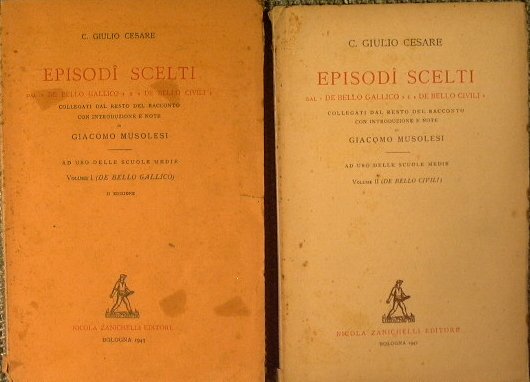 Volume I : De bello gallico. Volume II: De Bello civili - Introduzione e note di Giacomo Musolesi - in 8° - pp.VIII + 82 + 62 - Brossura editoriale - 2 volumi - Pagine intonse - Ingialliture alla brossura e rare alle pagine.
