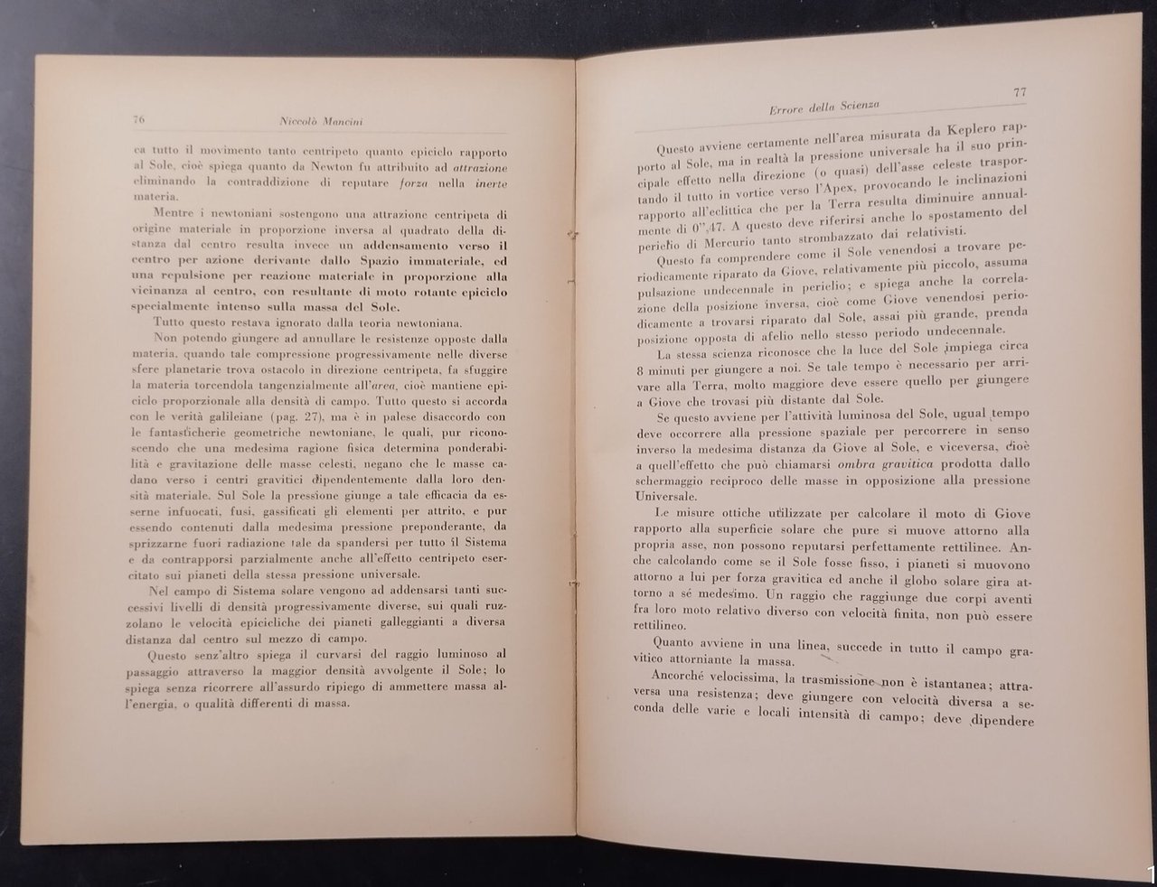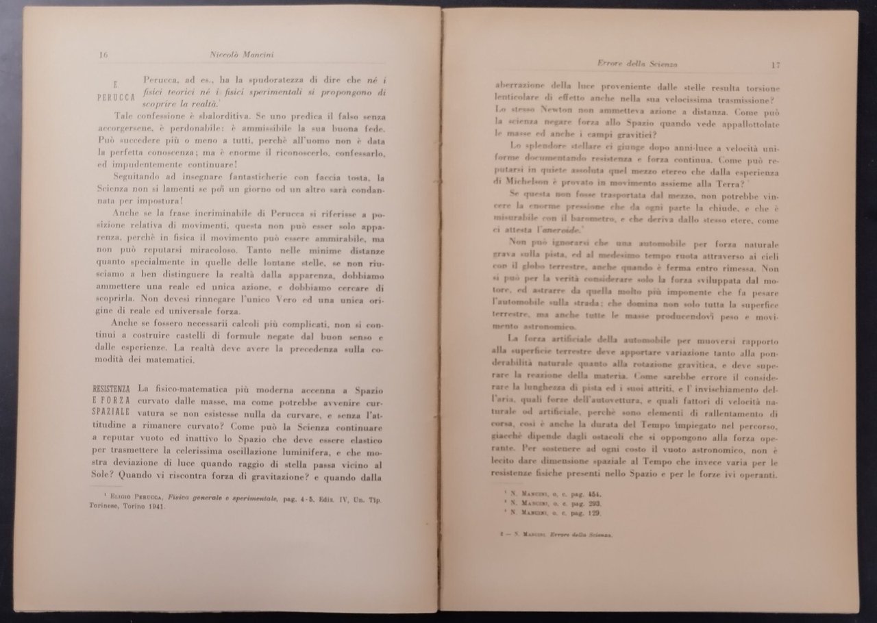 ERRORE DELLA SCIENZA di Niccolò Mancini. Geometria euclidea e tetradimensionale Severi-Peruca-Einstein, Resistenza e Forza Spaziale Galileo-Pecsi-Keplero, Todeschini-Armellini-Fantappie Macchie solari-Bendandi Misure Kepleriane.