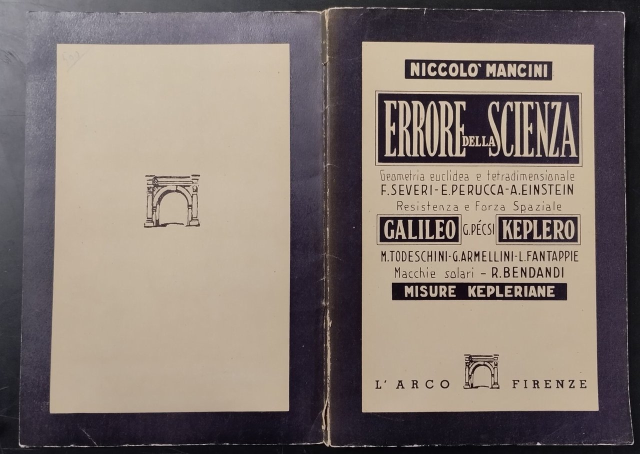 ERRORE DELLA SCIENZA di Niccolò Mancini 1950 L'arco Libro complottismo pseudo
