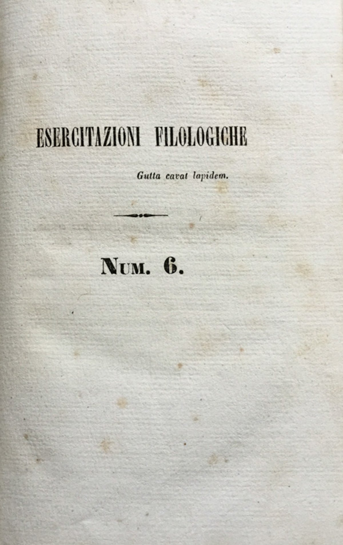 Modena, R. D. Camera, 1849, in 8vo, Copertina rigida, 113 pp. Elenco di sostantivi e aggettivi di cui si danno riferimenti d'uso e note di contesto. Dorso ripristinato. 801 - V In Ottavi (15-23cm ) Buono (Good) Buono