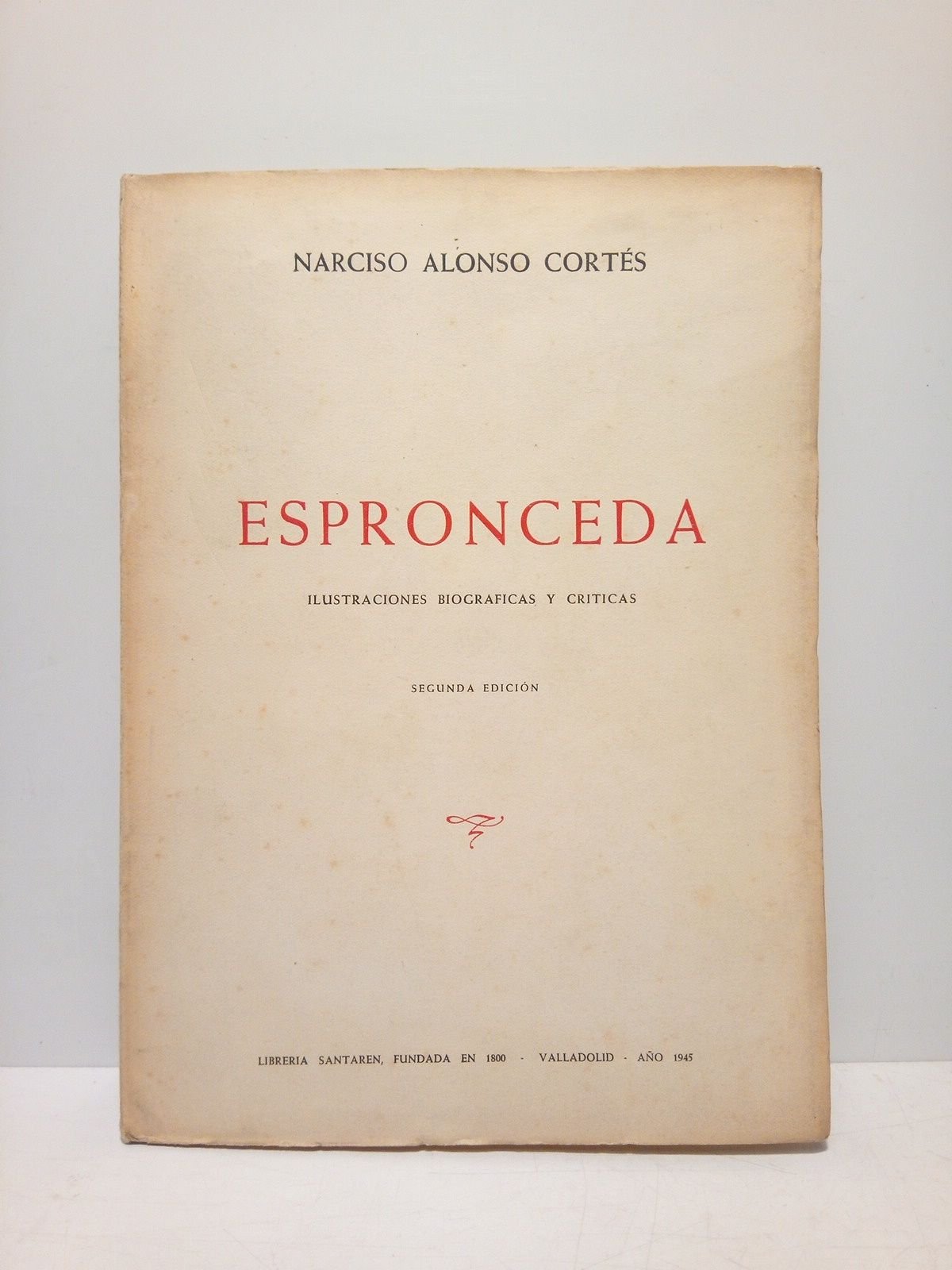 2ª Ed.- Valladolid: Librería Santarén, 1945.- 135 p.: Tras la portada retrato de D. José de Espronceda y diversal láminas más con retratos de literatos del siglo XIX; 4º menor (22 x 16 cm); intonso; Rústica Ed.* Excelente estado. LITERATURA Y FILOSOFÍA ESPAÑOLAS DE LOS SIGLOS XIX-XXI Y SU HISTORIA EN GENERAL