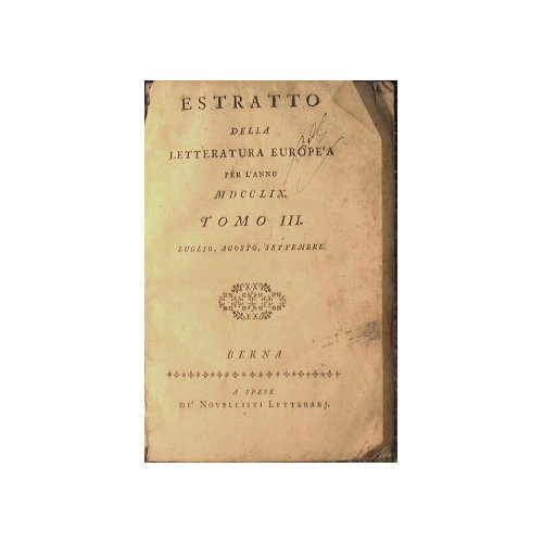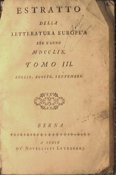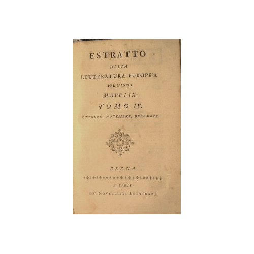 Estratto della letteratura europea. Tomo III: Luglio, Agosto , Settembre. Tomo IV: Ottobre, Novembre e Dicembre
