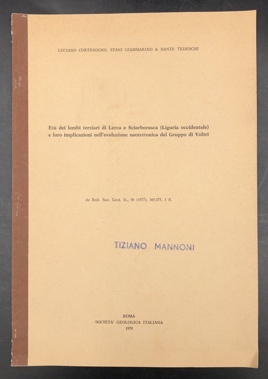 Età dei LEMBI TERZIARI di LERCA e SCIARBORASCA (Liguria occidentale) e loro implicazioni nell'EVOLUZIONE NEOTETTONICA del Gruppo di VOLTRI. Estr. orig. da Boll. Soc. Geol. It., 96 (1977).