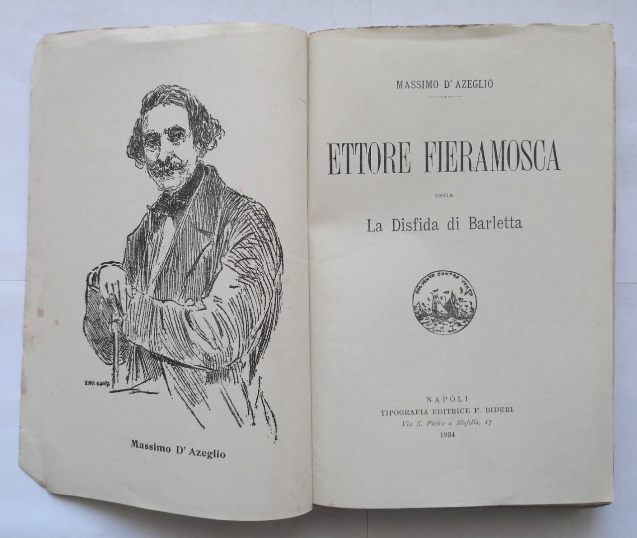 ETTORE FIERAMOSCA OSSIA LA DISFIDA DI BARLETTA Massimo D'Azeglio 1934 Libro