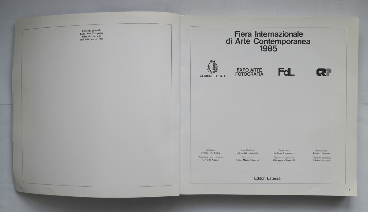 EXPO ARTE FOTOGRAFIA 1985 Laterza Fiera del Levante Bari libro illustrato