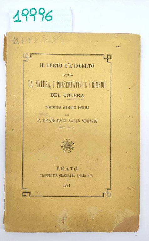F. Salis Seewis Prato Il certo e l'incerto intorno la natura i preservativi e i rimedi del colera Prato 1884