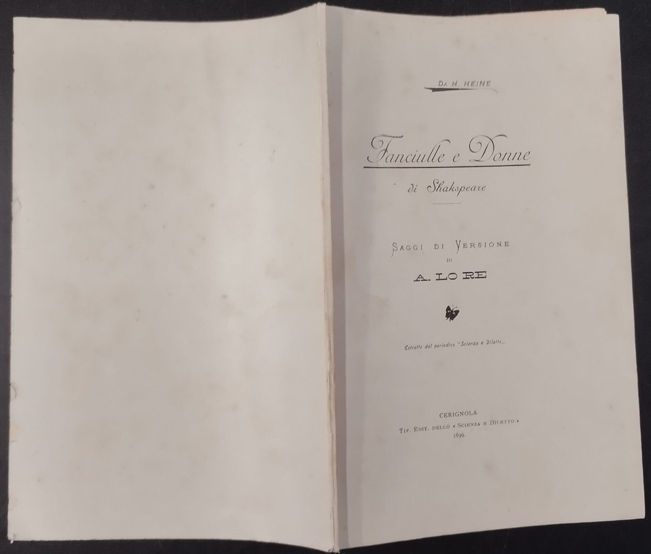 FANCIULLE E DONNE DI SHAKESPEARE A Lo Re 1899 Cerignola Libro versione Heine