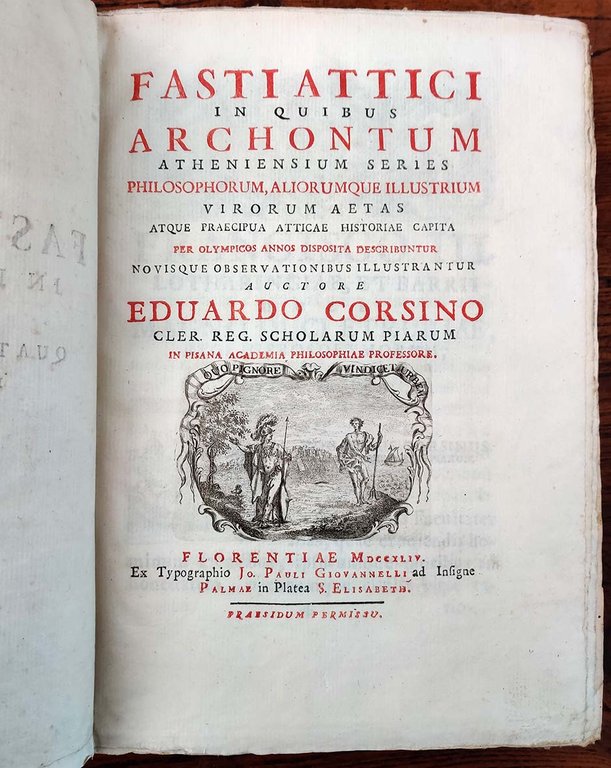 Fasti Attici in quibus archontum Atheniensium series philosophorum, aliorumque illustrium virorum aetas atque praecipua Atticae historiae capita per Olympicos annos disposita describuntur novisque observationibus illustrantur auctore Eduardo Corsino