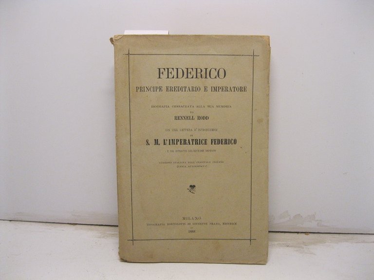 Federico Principe ereditario e Imperatore. Biografia consacrata alla sua memoria da Rennll Rodd con una lettera d'introduzione di S. M. l'Imperatrice Federico e col ritratto del Sovrano defunto.