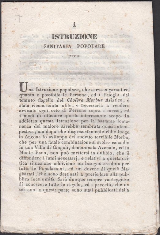 Fermo Morbo colera Istruzioni sanitarie alla popolazione A. Bolis 1836