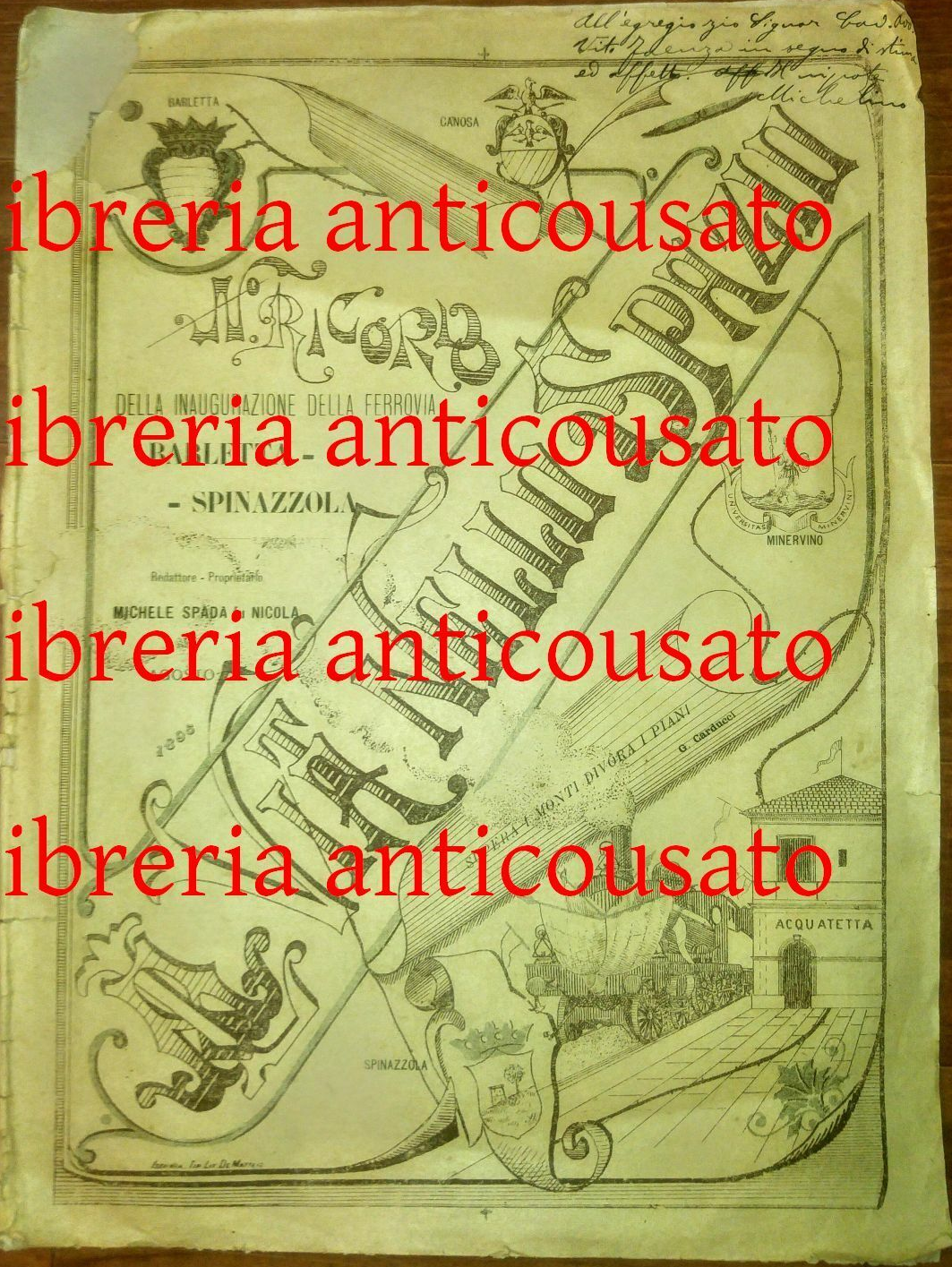 Ferrovia Barletta Spinazzola LA VITA NELLO SPAZIO 1895 giornale inaugurazione
