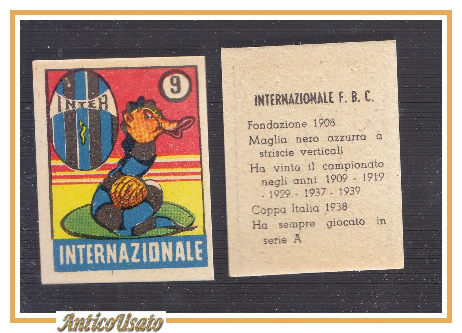 FIGURINA calcio INTER mascotte scudetto 1949 Originale Nannina o Mundus