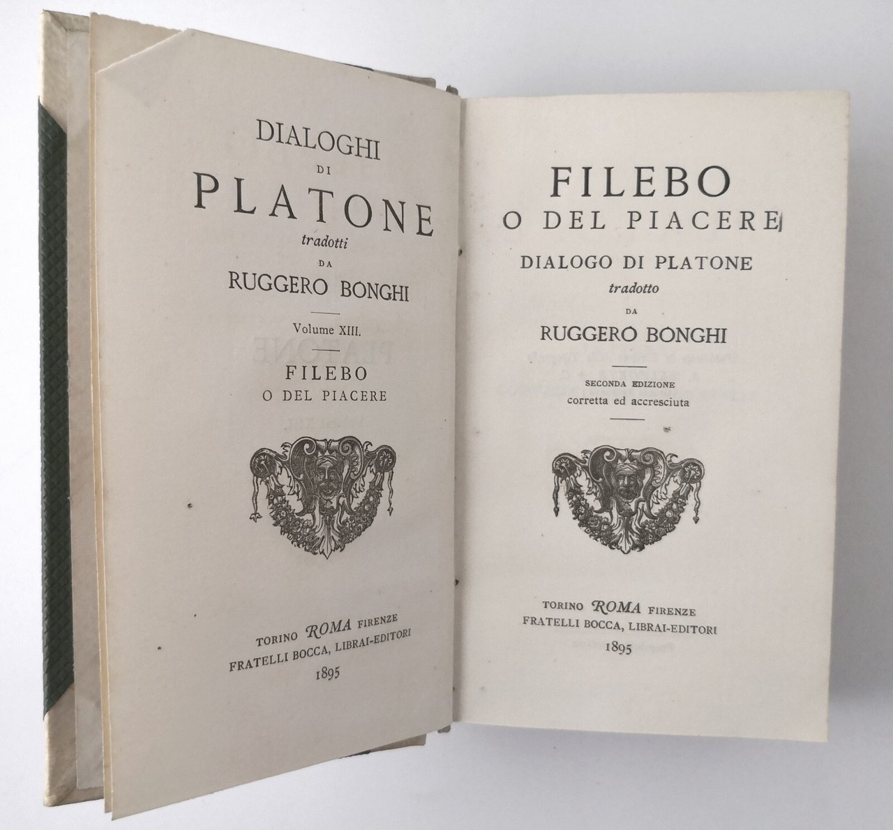 FILEBO O DEL PIACERE Ruggero Bonghi 1895 Bocca Dialoghi di Platone Libro Antico