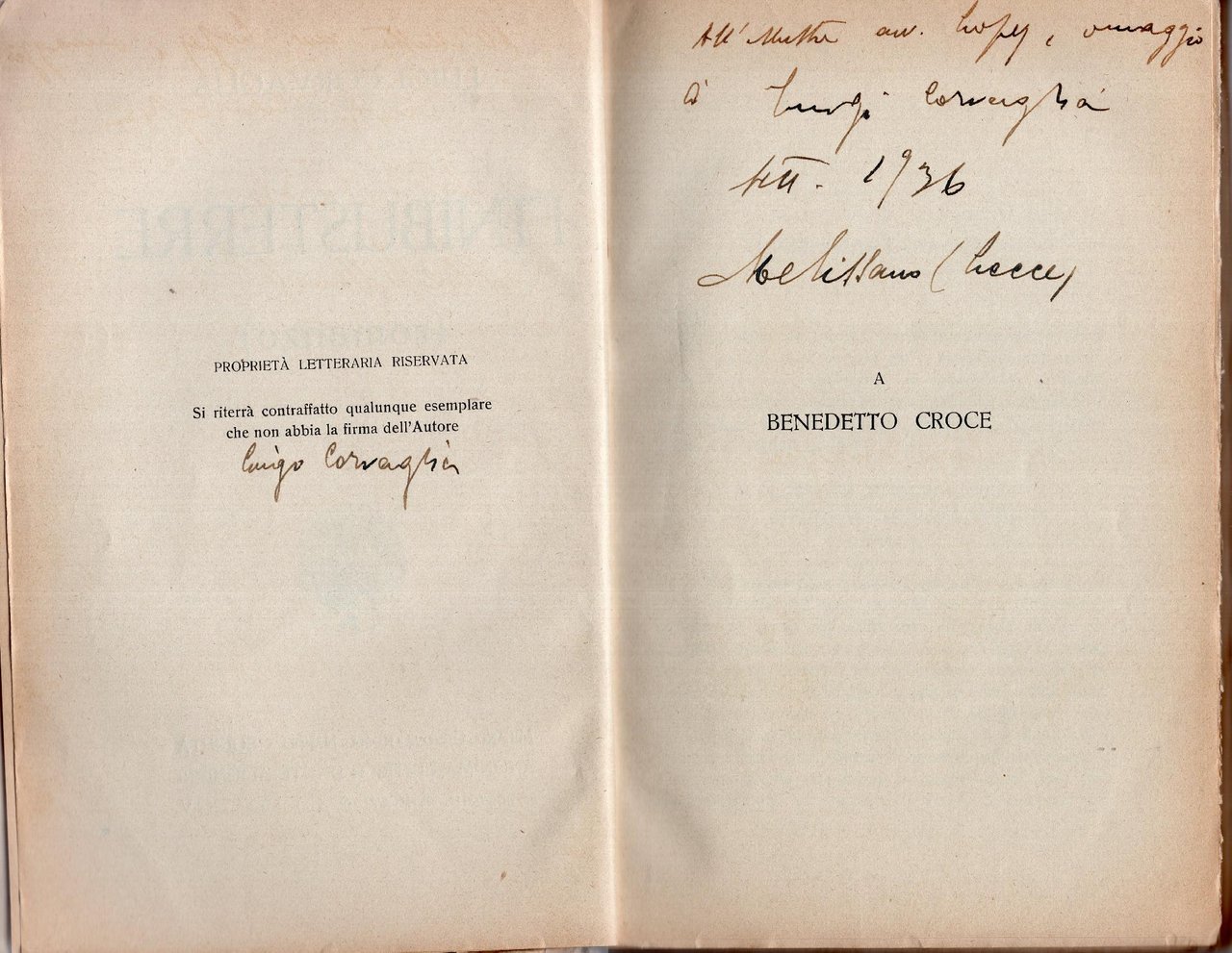 XII, 396 p. ; 20 cm. Brossura con strappi ai margini. Dedica autografa dell'autore firmata: Settembre 1936 Mellisano (Lecce). Allegata lettera firmata Francesco Francavilla, autore di vari libri, tra cui "il simbolismo". in ottavo Buono (Good) .
