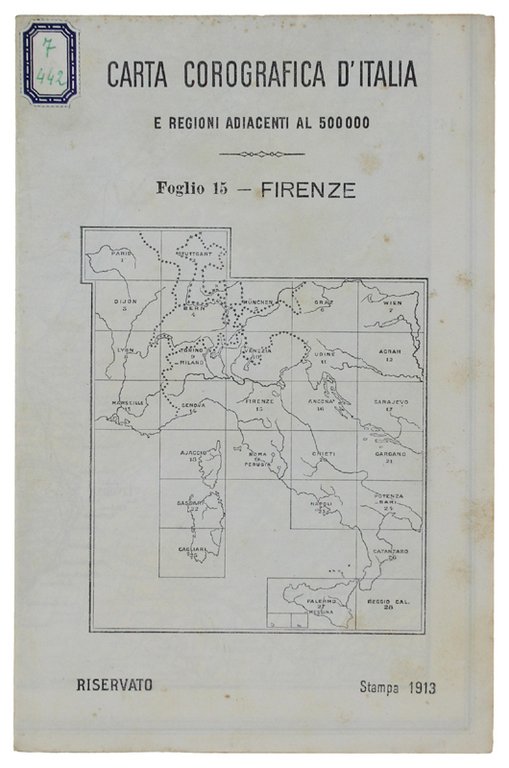 FIRENZE. Foglio 15 della CARTA COROGRAFICA D'ITALIA E REGIONI ADIACENTI al 500.000