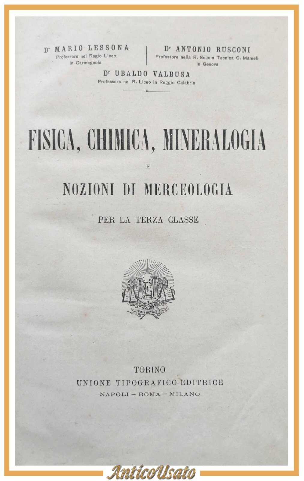 FISICA CHIMICA MINERALOGIA E NOZIONI DI MERCEOLOGIA Lessona 1911 UTET libro