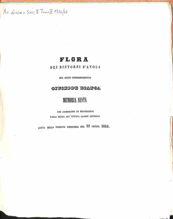 Flora dei dintorni di Avola Memoria sesta che comprende le descrizioni dalla sesta all'ottava classe linneiana