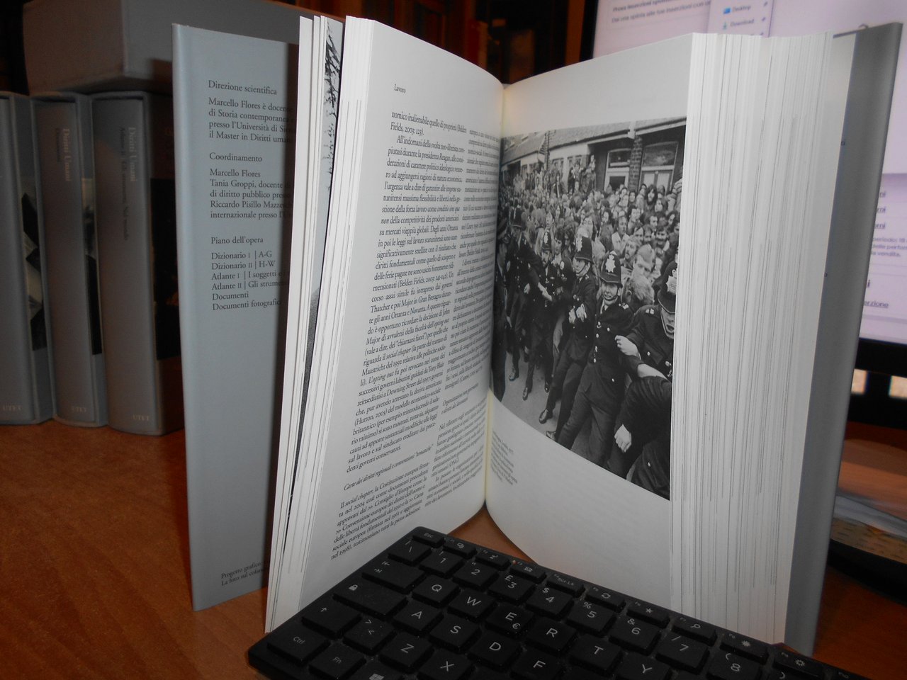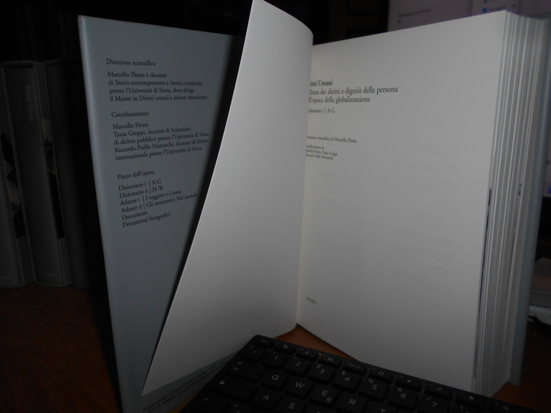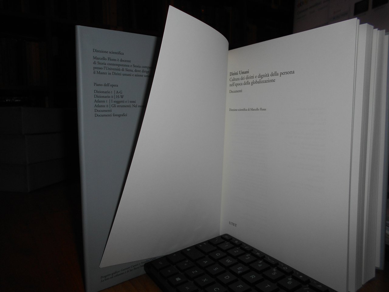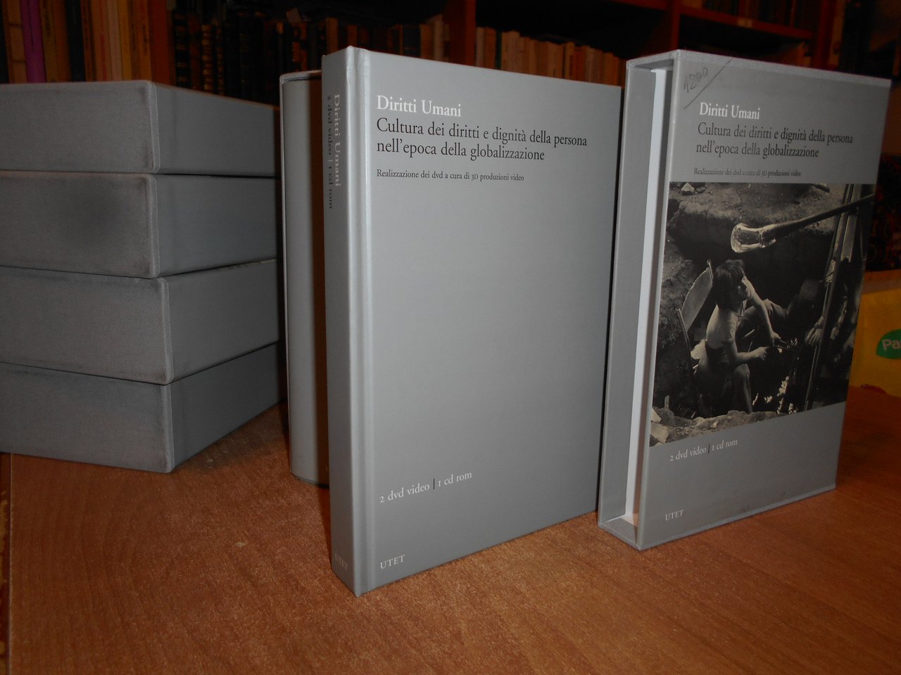 FLORES Marcello (Direzione scientifica a cura di). Diritti umani. Cultura dei diritti e degnità della persona nell'epoca della globalizzazione. Torino, UTET, 2007. 7 volumi in-8° grande, tela edit. con titoli e sovracopertine. Piano dell' opera: Dizionario 1/A-G. Dizionario 2/H-W (due volumi). per complessive 1443 pp. Atlante 1. I Soggetti e i temi. Atlante 2. Gli strumenti; Nel mondo. (due volumi). per complessive 1245 pp. Documenti/Documenti fotografici (due volumi). 519, 313 pp. + 2 dvd/1 cd rom. 6 volumi sono corredati da centinaia di illustrazioni anche a colori n.t. Esemplare (completo) in stato di nuovo negli astucci in cartonati rigido. Uff. stanzetta a sinistra in alto.