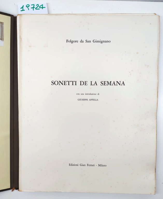Folgore di San Gimignano Sonetti de la semana Gian Ferrari Milano 1966 copia numero 41 di 70