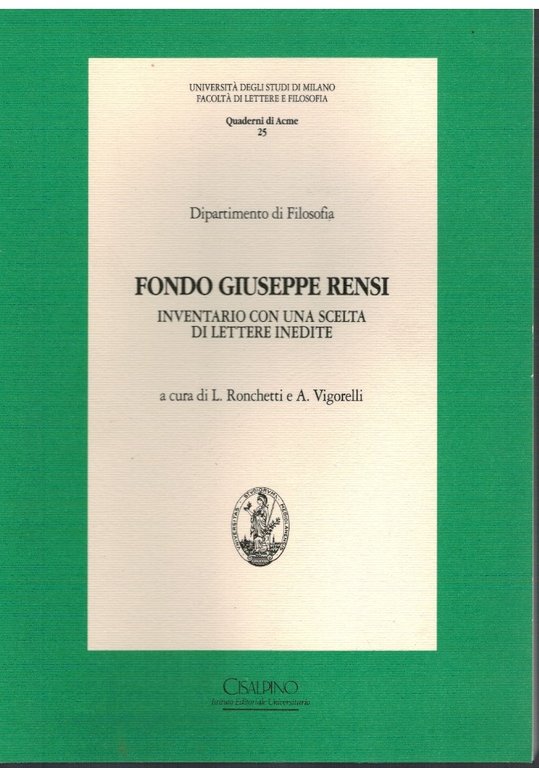 Fondo Giuseppe Rensi Inventario con una scelta di lettere inedite