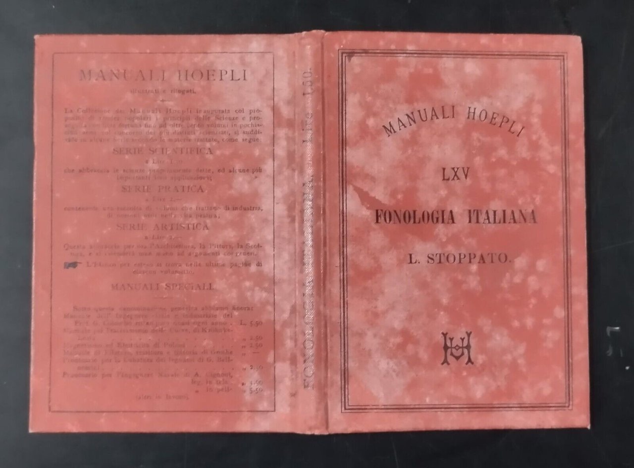 FONOLOGIA ITALIANA di Lorenzo Stoppato 1887 Hoepli Libro manuale
