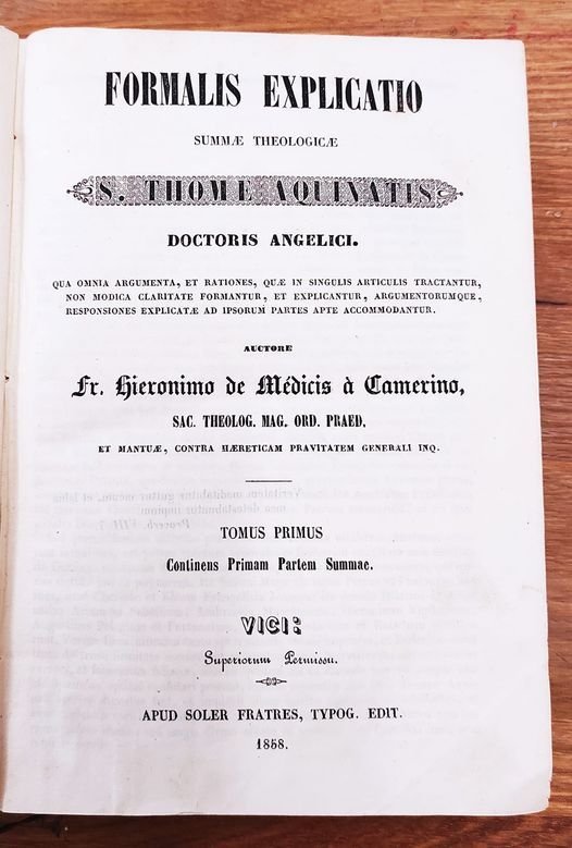 Formalis explicatio Summae theologicae s. Thomae Aquinatis Doctoris Angelici ... auctore fr. Hieronimo de Médicis à Camerino. Tomo I, Continens primam partem Summae. Tomo II, Continens primae partis secundum volumen. Tomo III, Continens primae secundae partis primum volumen. Tomo IV, Continens primae secundae partis secundum volumen . Tomo V, Continens primae secundae partis tertium volumen. Tomo VI, Continens secundae secundae partis primum volumen