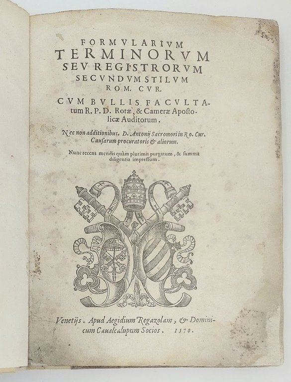 FORMULARIUM TERMINORUM seu Registroum secundum stilum Rom. Cur. Cum bullis facultatum R.P.D. Rotae, & Camerae Apostolicae auditorum...