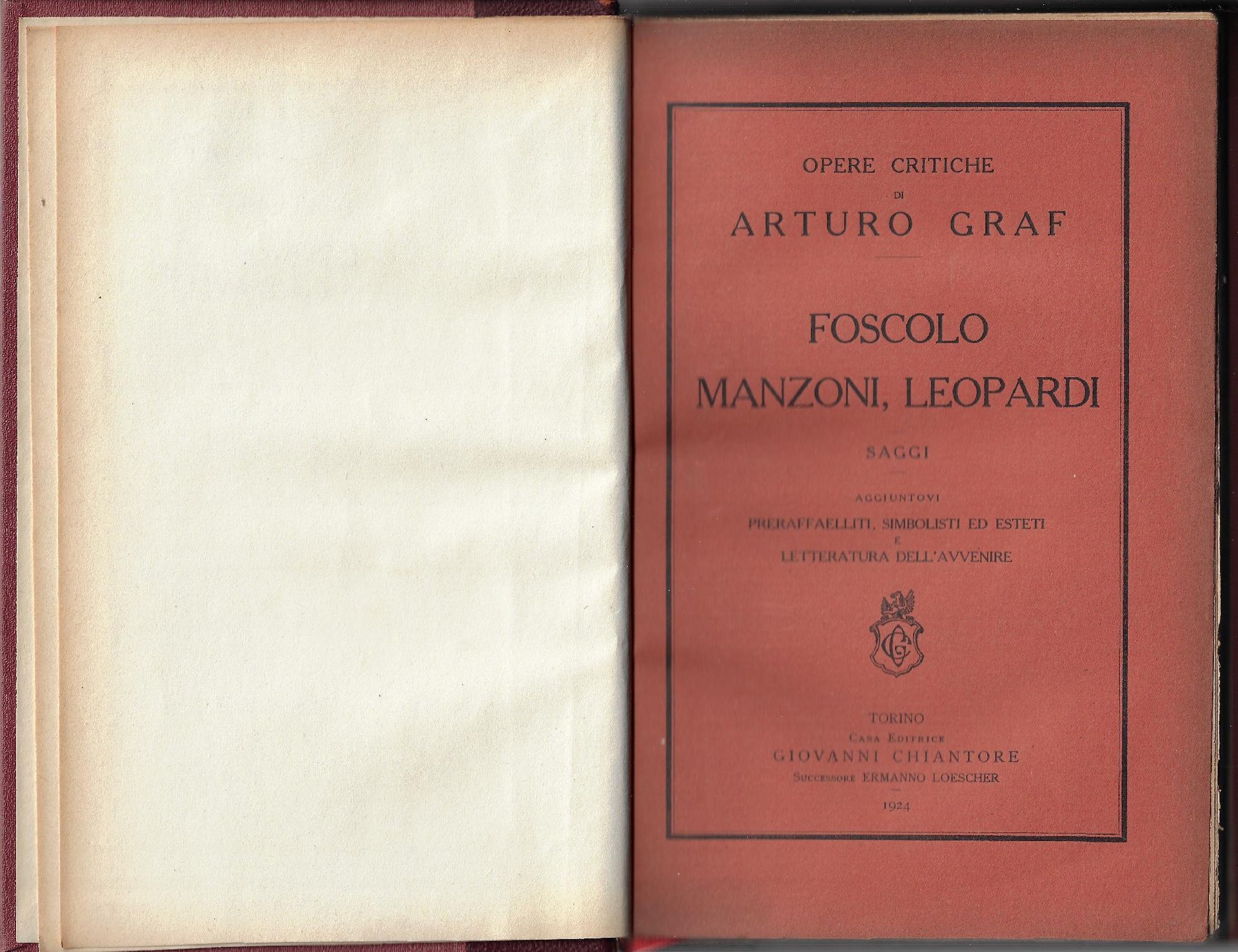 Collana Opere critiche di Arturo Graf. Aggiuntovi Preraffaelliti, simbolisti ed esteti e letteratura dell'avvenire. Legatura editoriale, copertine originali conservate, 365 p. copertina rigida Buono (Good) segni del tempo, ingiallimento, volume rilegato, copertine originali conservate.